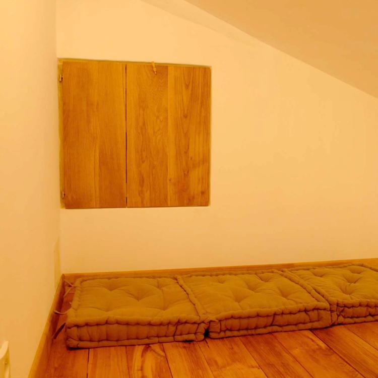 Le Gîte des Loirs occupe le premier étage de notre ferme du Couserans, entièrement rénovée tout en conservant son âme d'origine. Poutres apparentes, parquet chaleureux, fenêtres offrant une vue imprenable sur la rivière Le Salat et les premières crêtes pyrénéennes — chaque détail invite à la détente.